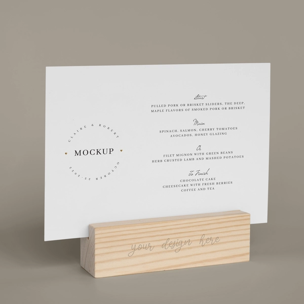You can choose standard sizes like 4×6”, 5×7”, A5 or request custom dimensions. Formats include A-Frame tent, pyramid fold, or single-panel insert style.